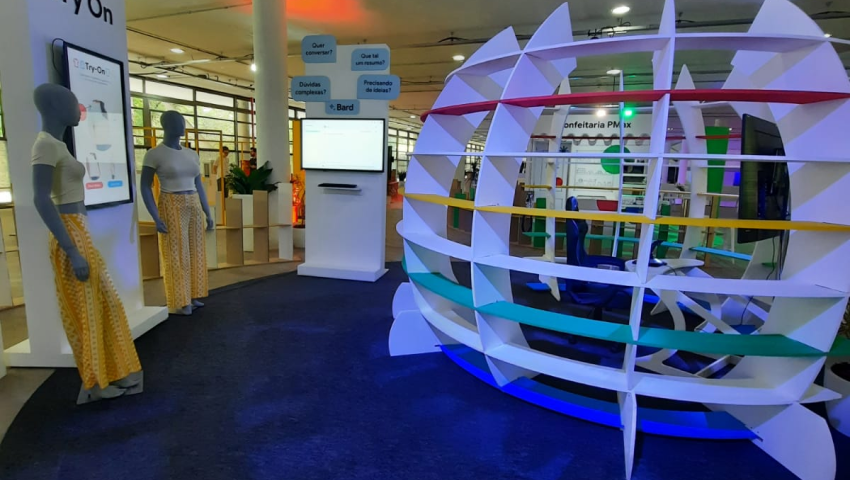 Uma das ativações tinha um simulador que mostrava a IA do Google auxiliando como copiloto na jornada de uma campanha digital, o usuário pilotava uma nave para coletar itens e descobrir informações.
