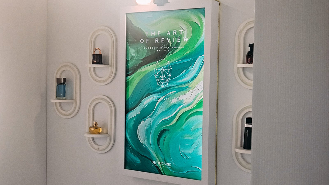 Em parceria com a Almap BBDO, desenvolvemos uma máquina capaz de fazer algo que as palavras não conseguem: ler o que uma fragrância provoca por dentro. The Art of Review nasceu da premissa de que a Arte da Perfumaria é a união de craft e emoção — e que essa emoção merecia ganhar forma visual.